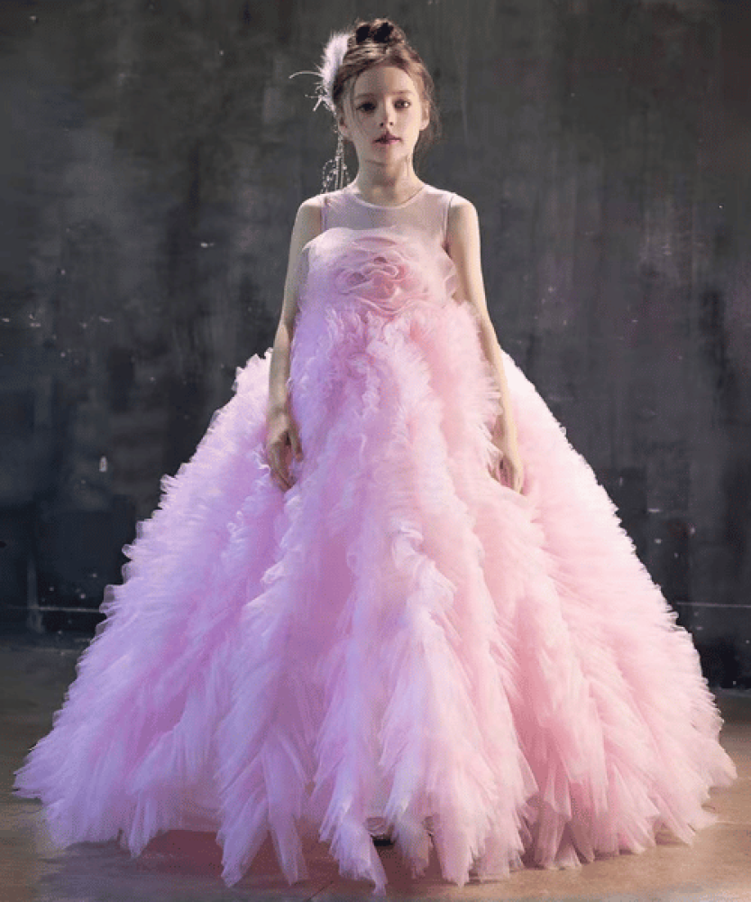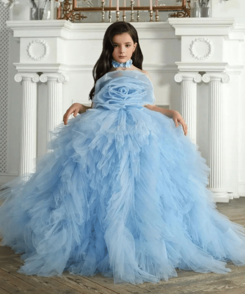 - يأتي بقصة ملوكية بلا أكمام مع ياقة على شكل قارب وتطريز ناعم يمنح طفلتك إطلالة حالمة لا تُنسى.