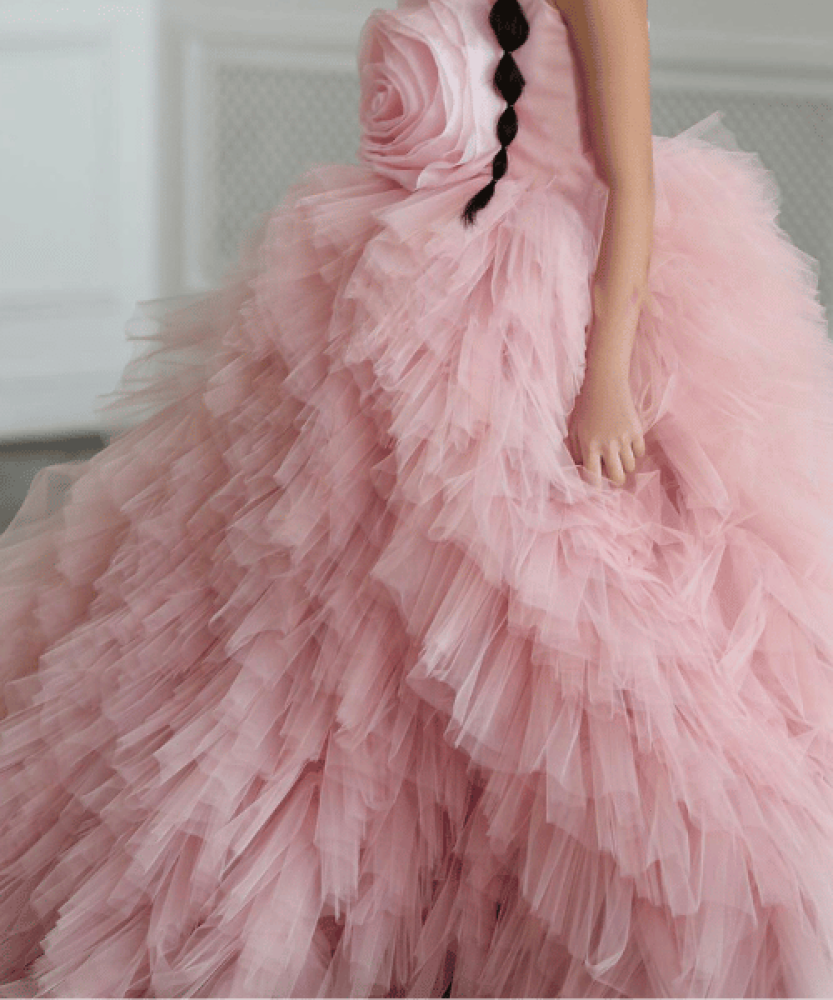 فستان وردي أنيق وراقي مزين يدويا بالزهور